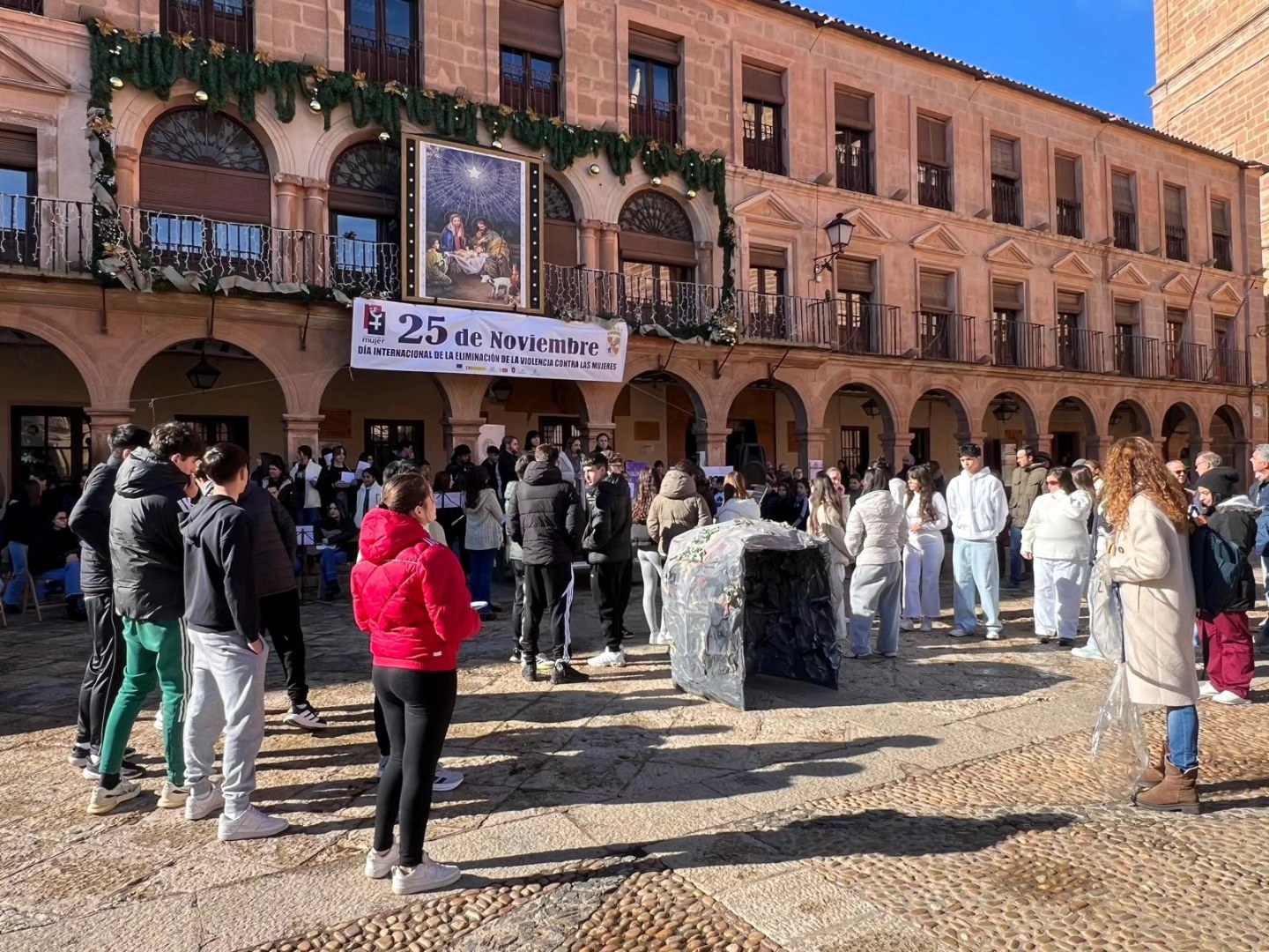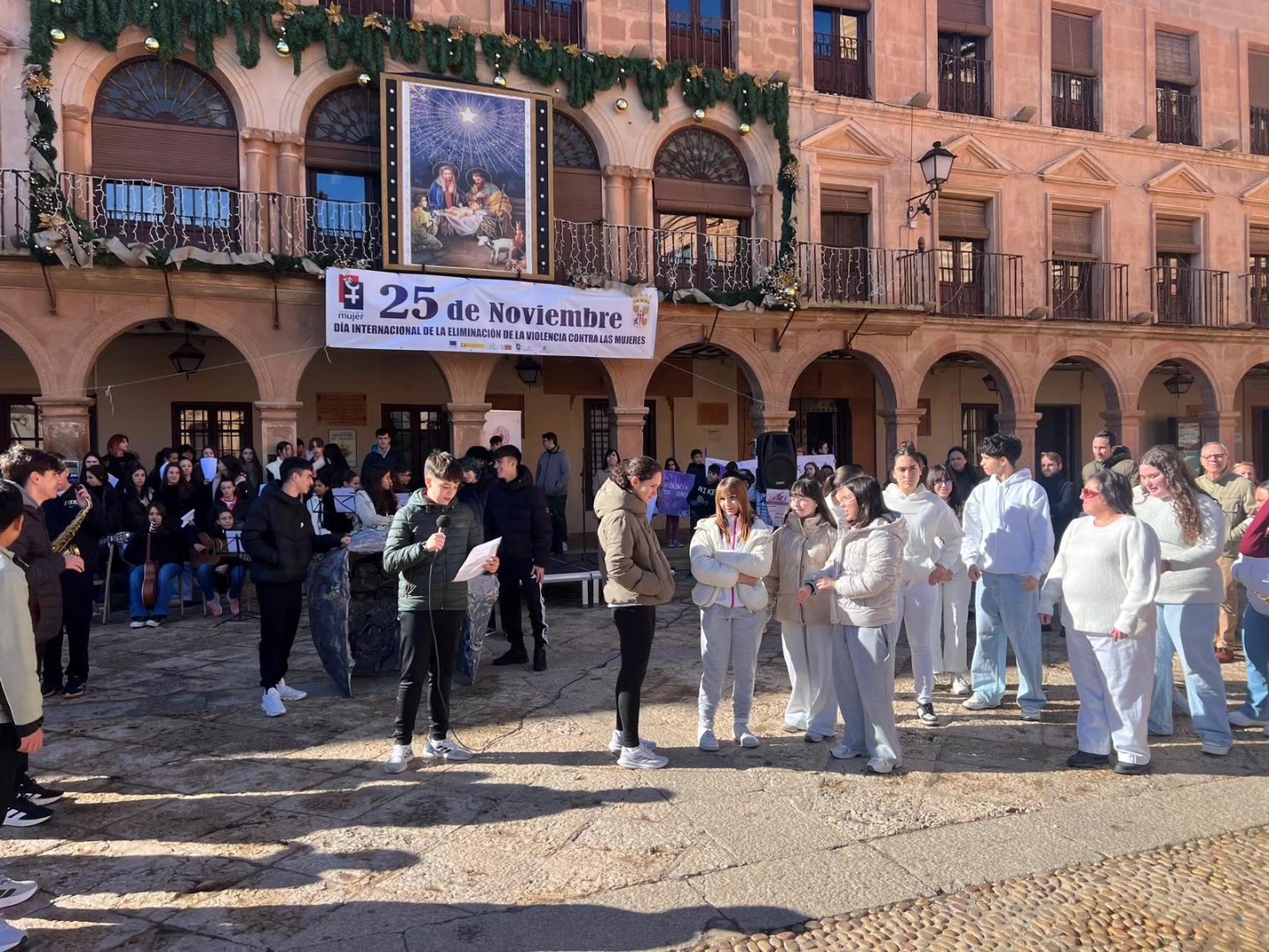 El IES Francisco de Quevedo participó en la conmemoración del Día Internacional de la Eliminación de la Violencia contra la Mujer que se celebra anualmente el 25 de noviembre para denunciar la violencia que se ejerce sobre las mujeres en todo el mundo y reclamar políticas en todos los países para su erradicación. Para ello, desde el Departamento de Música, Orientación y de Servicios Socioculturales y a la Comunidad se ha contado con la colaboración del alumnado de 3ºA, 3ºB, Programas de Diversificación Curricular y del CFGM Atención a Personas en Situación de Dependencia, llevaron a cabo la performance "Romper el silencio" con el fin de dar visibilidad a la pérdida de identidad que sufren muchas mujeres por el efecto de las palabras que hieren y humillan, dando relevancia a través de la representación a la importancia de reconocer estos comportamientos para insistir en que se puede salir de esa espiral a través de levantar la voz y del cuidado de los demás.